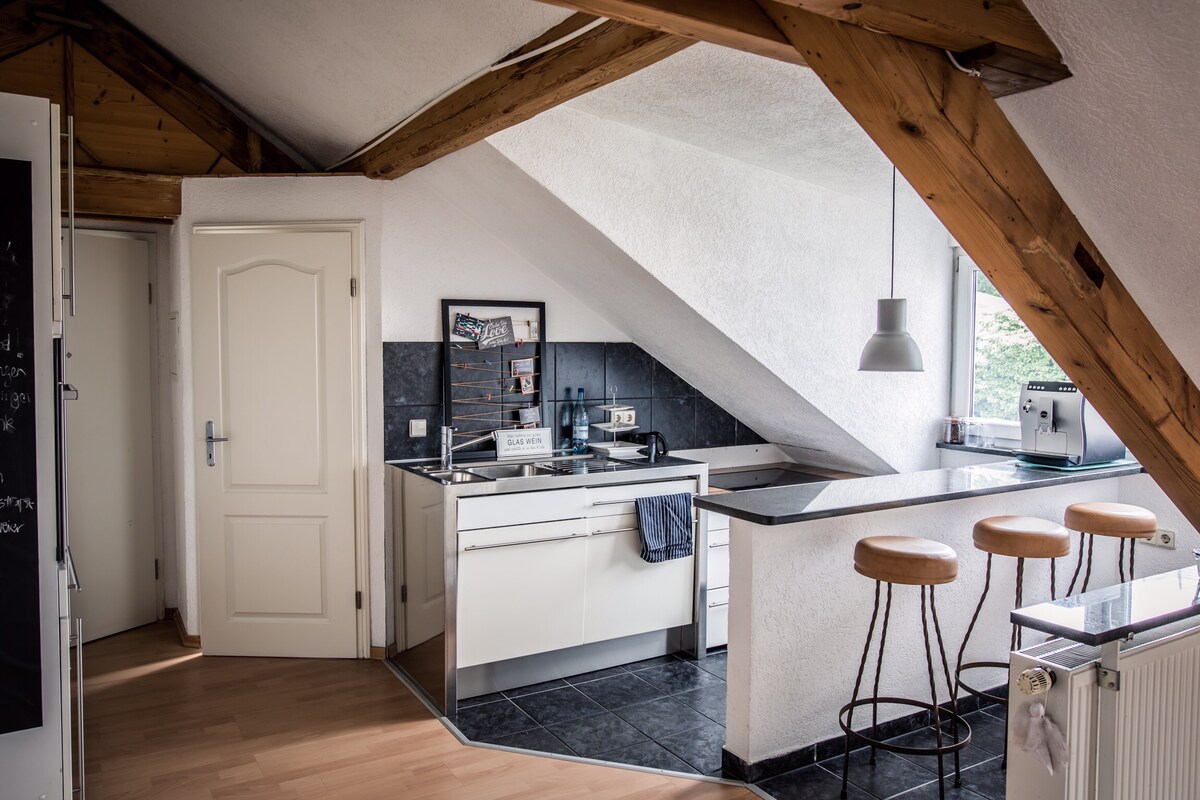 Masiyahan sa simpleng buhay sa tahimik at sentral na tuluyan na ito, 10 minutong lakad papunta sa istasyon ng tren at 20 minuto sa sentro ng lungsod, 3 minuto papunta sa S - Bahn. Ang apartment ay isang na - convert na shed, na na - access ng isang matarik na hagdan. May maliit na entrance area sa ground floor na may wardrobe at seating area. Ang itaas na palapag ay may maliit na living/sleeping area na may maliit na kusina, seating at maliit na banyong may shower.