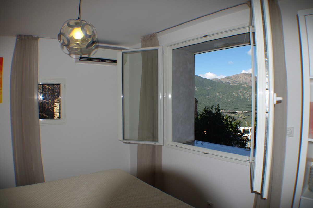 Magandang bagong apartment na matatagpuan sa sahig ng hardin ng isang hiwalay na bahay, tahimik sa pasukan ng nayon ng Levie. may malaking banyo na may walk - in shower, lababo sa kastanyas na board. Bukas ang kusina sa malaking sala na may sofa at TV. Mapupuntahan ang malaking terrace na natatakpan ng dining area mula sa kusina. May ganap na access sa hardin. Ang apartment ay napaka - functional at kaaya - aya. Pellet stove at reversible na aircon.