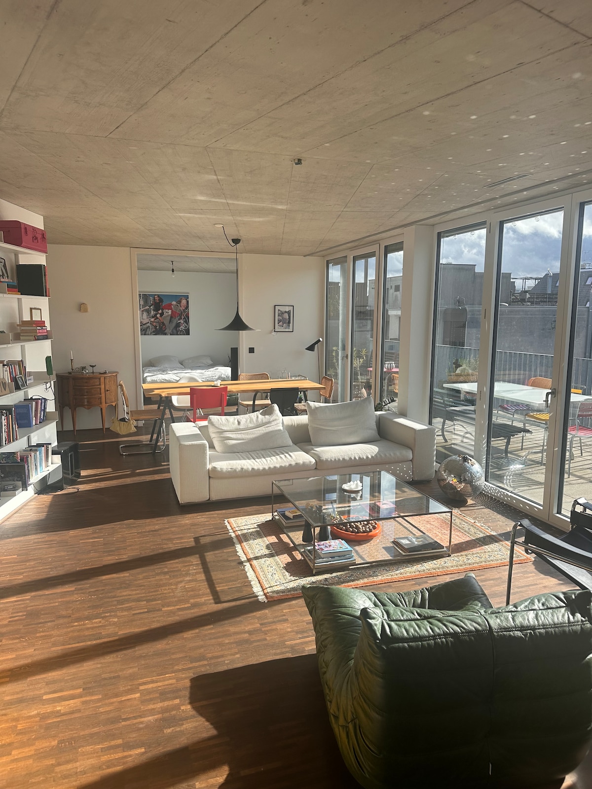 Modern at natatanging penthouse apartment na mahigit sa tatlong palapag. Matatagpuan sa gitna ng Zürich West: may sining, disenyo, pagkain, kultura, pamimili at arkitektura sa gitna ng pansin. Maluwang at marangyang apartment na may malaking Terrace, whirlpool, bbq, fireplace, gourmet kitchen at marami pang iba. Perpektong access sa pampubliko at pribadong transportasyon. Kasalukuyang inaayos ang pangunahing kusina kaya may ilang partikular na limitasyon (matatagpuan ang dishwasher at oven sa rooftop 2nd Kitchen)